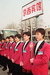 賓館禮儀小姐機場迎接兩會代表 2000年3月2日 09:12 ![]() 北京各賓館的禮儀小姐三月一日到機場迎接參加“人大”、“政協(xié)”會議的代表和委員們。作者:王麗南