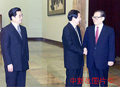 江澤民結(jié)束亞歐非六國訪問回國 2000年4月29日 10:21 ![]() 中國國家主席江澤民,二十八日結(jié)束對亞歐非六國的訪問回國,國務(wù)院總理朱(金加容)基、國家副主席胡錦濤到人民大會堂迎接。中新社記者 滿會喬 攝