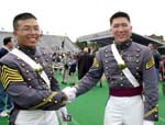 七華裔西點(diǎn)軍校畢業(yè)(附圖) 2001年6月4日 13:54 ![]() 洪偉杰(左)以第十五名的成績登畢業(yè)生榮譽(yù)榜,臺(tái)北市長馬英九的外甥余靖(右)亦獲多項(xiàng)榮譽(yù) 中新網(wǎng)紐約6月3日消息:位于紐約上州的美國陸軍官校(西點(diǎn)軍校,United States Military Academy atWest Point) 2日在滂沱大雨中舉行2001年畢業(yè)典禮,901名應(yīng)屆畢業(yè)生中,有7名華裔子弟,其中洪偉杰以第十五名的成績登畢業(yè)生榮譽(yù)榜。 這七名華裔子弟是:洪偉杰、潘安驪、余靖、鄭建明、李之華、陳德凱(譯音)和楊丹尼爾(譯音),其中潘安驪是昨日唯一有華裔血統(tǒng)的女性畢業(yè)生,而余靖是臺(tái)北市長馬英九的外甥。 |