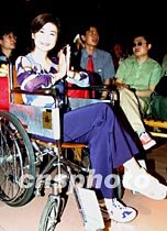 吳小莉帶腳傷參加大學生申奧會。中新社圖 魏孝明 攝