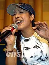圖:“飛車女俠”孫悅 2001年6月8日 10:12 從青島開到濟南的路上孫悅駕駛著鳳凰越野車一路以140公里的時速狂奔。ㄑ赝疚从鲅簿,否則駕照難保。) 中新社圖 魏孝明 攝