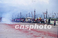 八月一日,休漁期結束。粵西的三百五十艘漁船在廣東茂名博賀漁港齊齊揚帆出海。中新社圖 姜玉峰 攝