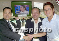 組圖:譚詠麟公司為小巴乘客提供節(jié)目 2001年08月16日 09:25 ![]() 東方魅力主席譚詠麟、東方魅力執(zhí)行董事長黃勤道(左)、綠色專線小巴總商會(huì)主席邱戊秀(右二)、冠榮董事長馬亞木(左二)在記者會(huì)上介紹有關(guān)事宜。中新社傳真 鄧慶樂 攝 ![]() 東方魅力集團(tuán)15日在香港宣布與綠色專線小巴總商會(huì)及冠榮車行有限公司攜手合作,為公共專線小巴乘客提供精彩娛樂資訊及廣告。東方魅力主席譚詠麟(右)、綠色專線小巴總商會(huì)主席邱戊秀(右)、冠榮董事長馬亞木為祝合作成功握手。中新社傳真 鄧慶樂 攝