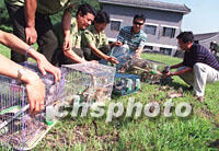 北京人年食麻雀逾百萬 昔日“害鳥”待拯救 2001年08月25日 10:23 ![]() 二十四日,北京市林政稽查大隊在京郊森林公園放生五百多只麻雀,這些麻雀是昨日在鳥市稽查救回的。中國目前已加大對各種野生動物的保護力度,于去年八月立法規(guī)定:捕殺、出售、食用麻雀已屬違法。中新社記者 張宇 攝