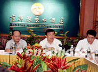 粵海鐵路通道加緊建設(shè) 2003年坐火車去海南 2001年09月03日 07:35 ![]() 9月2日上午,粵海鐵路通道建設(shè)領(lǐng)導(dǎo)小組第五次會(huì)議決定,粵海鐵路通道項(xiàng)目新增資本金七億元人民幣,海南島西環(huán)線即將全面開工建設(shè)。海南省官員汪嘯風(fēng)(左)、鐵道部副部長(zhǎng)蔡慶華(中)、廣東省常務(wù)副省長(zhǎng)歐廣源等出席了會(huì)議。中新社圖 王辛莉 攝