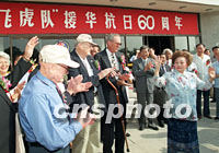 組圖:美國“飛虎隊(duì)”援華抗日60周年座談會 2001年09月05日 18:47 ![]() 60年前曾為中國抗日戰(zhàn)爭作出特殊貢獻(xiàn)的美國“飛虎隊(duì)”四名隊(duì)員及陳香梅女士,5日上午來到北京蘆溝橋中新社記者 趙振清 攝抗日戰(zhàn)爭紀(jì)念館,參加美國“飛虎隊(duì)”援華抗日60周年座談會等一系列活動。 ![]() 美國飛虎隊(duì)飛行隊(duì)長、飛虎隊(duì)功勛飛行員羅伯特·詹姆斯·雷思5日在北京蘆溝橋中國抗日戰(zhàn)爭紀(jì)念館參加美國飛虎隊(duì)援華抗日60周年座談會,當(dāng)他看到1941年拍攝的飛虎隊(duì)將士與中國工民一道抗擊日本侵略者的歷史圖片時感慨萬千。中新社記者 王瑤 攝