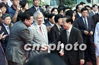 ![]() 國(guó)務(wù)院副總理錢(qián)其琛十六日親赴南京紫金山下的國(guó)際會(huì)議中心,看望出席首屆世界華文傳媒論壇的代表,并與大家合影留念。中新社記者 王瑤 攝 ![]() 國(guó)務(wù)院副總理錢(qián)其琛十六日親赴南京紫金山下的國(guó)際會(huì)議中心,看望出席首屆世界華文傳媒論壇的代表,并發(fā)表了熱情洋溢的講話(huà)。中新社記者 王瑤 攝