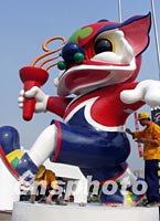 圖:九運(yùn)會(huì)吉祥物威威 2001年10月21日 15:19 ![]() 再過(guò)二十天,第九屆全國(guó)運(yùn)動(dòng)會(huì)將在廣州正式開(kāi)幕。天河體育中心的工人正在為正門(mén)前的雕塑吉祥物威威上色。中新社圖 柯小軍 攝 |