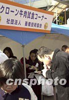 圖:日本力圖喚起人們對(duì)國(guó)產(chǎn)牛肉的信心 2001年11月19日 15:11 ![]() 日本人一向嗜食牛肉,雖然瘋牛病問(wèn)題鬧得人心惶惶,但東京“食肉市場(chǎng)節(jié)”上免費(fèi)品嘗仍吸引了不少牛肉美食家。圖為人們?cè)跔?zhēng)著品嘗受精卵克隆牛肉。中新社記者 陶光雄 攝 |