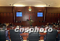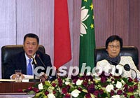 何厚鏵作澳門特區(qū)政府2002年財(cái)政年度施政報(bào)告 2001年11月21日 07:35 ![]() 澳門立法會(huì)議員二十日聽(tīng)取行政長(zhǎng)官何厚鏵所作二零零二年施政報(bào)告。中新社記者 宗金柱 攝 ![]() 澳門特區(qū)行政長(zhǎng)官何厚鏵(左),二十日代表特區(qū)政府在立法會(huì)大樓作二零零二年施政報(bào)告。中新社記者 宗金柱 攝