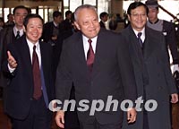 董建華抵達(dá)北京述職 將與江澤民等領(lǐng)導(dǎo)人會(huì)面 2001年12月19日 13:04 ![]() 前來(lái)北京述職的香港特別行政區(qū)行政長(zhǎng)官董建華十九日中午抵達(dá)北京港澳中心并接受記者訪(fǎng)問(wèn)時(shí)說(shuō):“為香港真正做點(diǎn)事是我的目標(biāo)”。中新社記者 毛建軍 攝 ![]() 前來(lái)北京述職的香港特別行政區(qū)行政長(zhǎng)官董建華十九日中午抵達(dá)下榻的北京港澳中心,受到國(guó)務(wù)院港澳辦公室副主任陳佐洱(左一)等人的迎接。中新社記者 毛建軍 攝