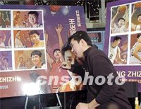 圖文:中國球員王治郅肖像郵票在紐約首次面世 2002年01月04日 14:26 ![]() 美東時(shí)間三日中午,美國職業(yè)籃球協(xié)會中唯一的中國球員王治郅出席了紐約市中心NBA專賣店里舉行的他個(gè)人肖像郵票首次公開展示會。這套郵票由利比里亞政府發(fā)行,可在全球通用。會后,他為慕名前來的美國球迷簽字。中新社記者 陳建 攝 ![]() 美國職業(yè)籃球協(xié)會、BDA體育管理中心、國際政府集郵代理機(jī)構(gòu)今天宣布,將發(fā)行一套以美國達(dá)拉斯小牛隊(duì)中鋒王治郅肖像為主題的法定郵票。王治郅出席了紐約市中心NBA專賣店中舉行的郵票首次公開展示會并在展板上簽字。中新社記者 陳建 攝