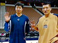 圖:王治郅和巴特爾在美國NBA賽場上對決 2002年03月04日 13:38 ![]() 加盟美國達拉斯小牛隊的中國籃球運動員王治郅,與加入美國西部掘金隊的中國籃壇名將巴特爾,四日在美國丹佛TOM體育館的NBA賽場上對決,兩人在進入場地時表示戰(zhàn)勝對方和友誼。