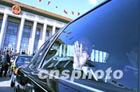 圖:美國(guó)使節(jié)驅(qū)車(chē)旁聽(tīng)人大開(kāi)幕會(huì) 2002年03月06日 17:06 ![]() 美國(guó)使節(jié)在北京人民大會(huì)堂旁聽(tīng)九屆全國(guó)人大第五次會(huì)議后,驅(qū)車(chē)駛離天安門(mén)廣場(chǎng)。中新社記者 劉殊瑾 攝