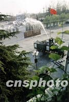 圖:消防演練與美化環(huán)境一舉兩得 2002年03月27日 10:36 ![]() 北京大興武警后勤基地消防隊,三月結合消防演練任務,派消防車一邊給大樹澆水,一邊訓練消防動作,一舉兩得。中新社圖 曹文 攝