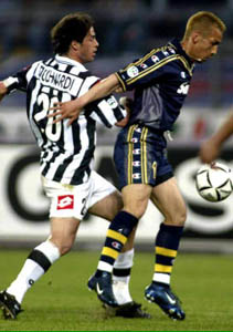 意大利杯:中田替補進球 帕爾馬1:2不敵老婦人 2002年04月26日 09:19 ![]() 中新網(wǎng)北京4月26日消息:在北京時間今天凌晨進行的意大利杯決賽首回合比賽中,老婦人尤文圖斯憑借板凳球員烏拉圭人薩拉耶塔的出色發(fā)揮,在主場2:1力擒帕爾馬。日本球星中田英壽本場比賽發(fā)揮出色,為帕爾馬攻入一球。 頂替特雷澤蓋上場的薩拉耶塔一個人就決定了這場比賽的結(jié)果。他先是在第6分鐘時在禁區(qū)內(nèi)為本隊獲得點球機會,由阿莫魯索操刀命中,尤文圖斯1:0。又在下半場57分鐘時,利用頭球為本隊貢獻一粒入球。 中田英壽在70分鐘時才獲得出場機會,當(dāng)時帕爾馬已經(jīng)0:2落后。上場不久,中田就有一腳精彩的射門,可惜被卡里尼封出底線。補時階段,中田英壽接馬爾基奧尼妙傳傳,一記右腳凌空為帕爾馬扳回一分。 賽后,尤文圖斯主帥銀狐里皮說:“我們應(yīng)該獲勝,因為在整個上半場和下半場的大部分時間里我們都占據(jù)了場上優(yōu)勢”。 而帕爾馬教練卡爾米尼亞尼也對比賽結(jié)果表示滿意,“中田在補時階段的進球,又讓我們?nèi)计鹆藠Z取意大利杯的希望”。 雙方第二回合較量將于六月十一日在帕爾馬的主場進行。 是役雙方出場陣容如下: 帕爾馬(3-4-2-1):塔法雷爾/杰圖(古倫科,第46分鐘),博戈西昂,貝納里沃/薩托,阿皮亞(中田英壽,第73分鐘),拉穆齊,迪亞納/馬爾基奧尼,米庫/哈坎-蘇克(博納佐利,第58分鐘) 尤文圖斯(4-3-1-2):卡里尼/圖拉姆、圖多爾(蒙特羅,第46分鐘),比林德利,帕拉馬蒂/C.澤諾尼,孔蒂,戴維斯(塔奇納迪,第58分鐘)/內(nèi)德維德(贊布羅塔,第46分鐘)/薩拉耶塔,阿莫魯索