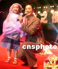 5月8日晚,浙江省天臺(tái)山文化旅游節(jié)文藝晚會(huì)正式開始,上萬(wàn)名群眾井然有序地冒雨觀看演出,表現(xiàn)了山城人民良好的精神風(fēng)貌。圖為小女孩為冒雨演唱的毛阿敏送花,毛阿敏深受感動(dòng)。中新社圖 丁必裕 張浙東 攝