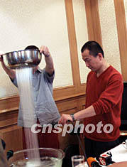 圖:譚盾演奏“多媒體音樂” 2002年05月17日 14:33 ![]() 剛剛獲得格萊美獎(jiǎng)的知名音樂家譚盾十七日現(xiàn)身滬上,并帶來(lái)了他獨(dú)特的“多媒體音樂”。圖為譚盾通過自己發(fā)明的半球形透明水盆,和外國(guó)音樂家一起演奏《永恒之水協(xié)奏曲》。孫璐 攝