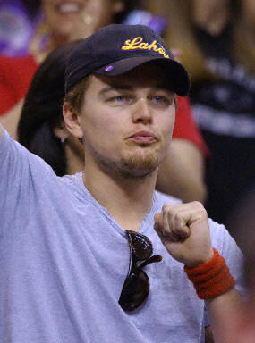 圖:萊昂納多關(guān)注NBA西區(qū)決賽 2002年05月27日 14:28 5月26日美國演員萊昂納多在NBA西區(qū)決賽上為洛杉磯湖人隊(duì)歡呼。湖人隊(duì)以100-99戰(zhàn)勝國王,雙方總比分戰(zhàn)成2比2平。法新供中新
