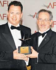 獲頒終身成就獎(jiǎng) 湯姆漢克斯現(xiàn)場(chǎng)感言"太幸運(yùn)"(圖) 2002年06月14日 10:19 ![]() 中新網(wǎng)香港6月14日消息:兩度勇奪奧斯卡影帝的湯姆漢克斯,當(dāng)?shù)貢r(shí)間12日晚獲美國(guó)電影學(xué)院頒發(fā)終身成就獎(jiǎng),創(chuàng)下歷年來(lái)獲此殊榮最年輕得主的紀(jì)錄。丹澤爾-華盛頓、梅格-萊恩等明星好友都出席盛會(huì)。大導(dǎo)演史蒂芬-斯皮爾伯格親自為他頒獎(jiǎng)。 今年7月將屆滿46歲的湯姆漢克斯,是本屆美國(guó)電影學(xué)院三十周年的終身成就獎(jiǎng)得主。湯姆漢克斯在領(lǐng)獎(jiǎng)時(shí)表示,他要感謝家人、觀眾這么多年來(lái)給他的支持與鼓勵(lì);對(duì)于自己能夠從事演電影這一行,湯姆漢克斯的感想是“很幸運(yùn)”。 據(jù)外電報(bào)道,頒獎(jiǎng)典禮12日晚間在洛杉磯柯達(dá)劇院舉行,在好萊塢擁有極佳人緣的湯姆-漢克斯,眾多明星好友都前來(lái)觀禮,“星光閃閃”的臺(tái)下貴賓與臺(tái)上的頒獎(jiǎng)典禮同樣看頭十足。 美國(guó)電影學(xué)院主席史春納日前曾表示,湯姆-漢克斯是“新一代美國(guó)電影的表率”,因此選定在美國(guó)電影學(xué)院三十周年時(shí)頒發(fā)終身成就獎(jiǎng)給他。 湯姆漢克斯主演多部電影都是票房保證,包括《西雅圖不眠夜》、《電子情書》、《搶救大兵瑞恩》等。 相關(guān)報(bào)道:飲水不忘思源 奧斯卡影帝湯姆·漢克斯捐資母校 相關(guān)報(bào)道:湯姆漢克斯將獲美國(guó)電影學(xué)院頒發(fā)終身成就獎(jiǎng) 相關(guān)報(bào)道:影帝湯姆漢克斯將加盟斯皮爾伯格新片演出 相關(guān)報(bào)道:周潤(rùn)發(fā)有機(jī)會(huì)與湯姆·漢克斯合作演繹華人 相關(guān)報(bào)道:湯姆·漢克斯與斯皮爾伯格合作最昂貴的電視劇