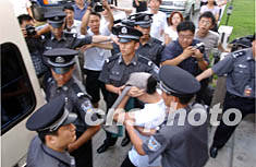 圖:歌星紅豆一審判處三年零六個(gè)月 2002年06月20日 17:18 ![]() 猥褻多名男童的青年歌星紅豆二十日在北京朝陽(yáng)法院被一審判處三年零六個(gè)月的徒刑。圖為紅豆在法庭宣判結(jié)束后,用衣服捂著頭走上囚車(chē)。作者:武仲林