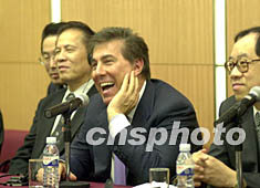美國“賭王”史提芬·永利談“澳門賭王”何鴻燊 2002年06月25日 08:31 ![]() 永利度假村(澳門)股份有限公司二十四日與澳門特區(qū)政府簽署娛樂場幸運博彩經(jīng)營批給合同簽字儀式后,永利負責(zé)人史提芬·永利在記者招待會上談笑風(fēng)生。李剛 攝