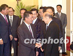 澳門(mén)政府與永利渡假村(澳門(mén))股份有限公司簽約 2002年06月25日 08:33 ![]() 澳門(mén)特區(qū)行政長(zhǎng)官何厚鏵二十四日與永利度假村(澳門(mén))股份有限公司簽署協(xié)議后,與永利部分股東握手。李剛 攝