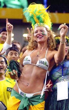 圖:巴西VS土耳其 巴西女郎身著比基尼十分搶眼 2002年06月26日 19:31 ![]() 北京時(shí)間6月26日晚,韓日世界杯第二場半決賽巴西隊(duì)VS土耳其隊(duì)的比賽將在日本琦玉體育場進(jìn)行。圖為看臺上巴西女球迷身著比基尼翩翩起舞。