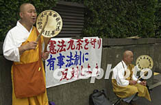 圖:日本僧侶國會前反對有事法制 2002年07月02日 20:10 ![]() 日本山妙法寺的僧侶在國會議員會館前頌經(jīng),反對正在國會審議的有事法制,要求日本政府嚴守“放棄戰(zhàn)爭”的憲法第九條。作者:陶光雄