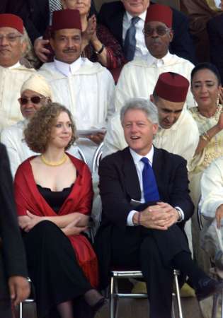 圖文:美國前總統(tǒng)克林頓和女兒參加摩洛哥國王婚禮 2002年07月13日 14:37 ![]() 摩洛哥國王穆罕默德六世12日晚在拉巴特王宮同拉拉-薩爾瑪公主舉行結(jié)婚慶典。圖為美國前總統(tǒng)克林頓和女兒在婚禮上。(春風(fēng))