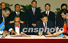 與臺灣“斷交” 瑙魯與中國建立大使級外交關(guān)系 2002年07月21日 14:10 ![]() 中華人民共和國外交部部長助理周文重與瑙魯共和國總統(tǒng)勒內(nèi)·哈里斯在香港分別代表各自政府在中、瑙兩國建立外交關(guān)系的聯(lián)合公報(bào)上簽字。潘索菲 攝