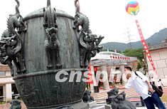 圖:中國(guó)首家地震科普教育館開館 2002年07月28日 18:17 ![]() “七.二八”唐山大地震二十六周年紀(jì)念日前夕,中國(guó)首家專業(yè)地震科普教育館二十七日在北京開館。圖為一參觀者在展館外以一比一復(fù)原的“張衡地動(dòng)儀”前駐足。作者:武仲林