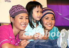 ![]() 樂壇女子組合Twins兩位成員蔡卓妍(右)、鍾欣桐8日1日在香港舉行「愛上色彩之歷險(xiǎn)」寫真集簽名會,大批Twins歌迷到場支持偶像,Twins被一位可愛的小女孩吸引合照。鄧慶樂 攝