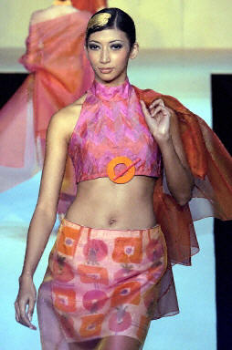 圖:印度時(shí)裝周上模特展示新款時(shí)裝作品 2002年08月03日 20:47 8月3日,在印度新德里時(shí)裝周上模特展示高級(jí)設(shè)計(jì)師的新款時(shí)裝作品。