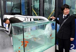 北京車展北汽福田推出“尾氣能養(yǎng)魚的客車”