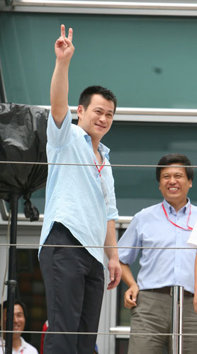 頒獎(jiǎng)過(guò)后,張國(guó)政準(zhǔn)備離場(chǎng),車迷顯然不想這么快就給這位大腕兒“放行”,他們用掌聲和呼喊將這位奧運(yùn)冠軍時(shí)間地長(zhǎng)“留”在頒獎(jiǎng)臺(tái)下,張國(guó)政的人氣幾乎壓倒了比賽冠軍。