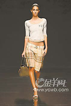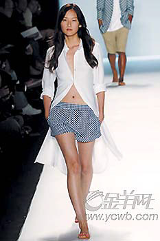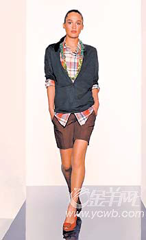 而更加隨意的Tommy Hilfiger,則將浪漫的海灘風(fēng)情演繹得更隨性,以寬大有型的格仔短褲搭配隨意敞開的休閑襯衫,簡單明了,一頭長發(fā)和敞開的領(lǐng)口是最具風(fēng)情的女性化標(biāo)簽。