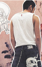 日系“仿古流”街頭風源自大阪,在服飾融入平安時代的傳統(tǒng)圖騰,包括華麗的刺繡、代表武士精神的漢字、浮世繪、仿補丁等元素,帶有濃郁的禪風古意,與東京原宿的街頭文化迥異。