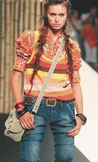 歐美系的牛仔品牌特別強調時尚感,多半會在細節(jié)融入當季的流行風,因此深受好萊塢明星的喜愛。如Diesel本季就主打軍裝風,Gas則刷白洗色,讓穿著更加舒適;True Religion則在褲管上融入刺繡、貼飾等元素;Miss Sixty則以抽須仿舊,詮釋頹廢時尚,以不同手法詮釋“奢華風”。