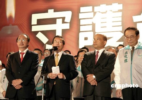 臺灣地區(qū)領導人選舉二十二日晚揭曉,謝長廷、蘇貞昌等民進黨競選團隊承認敗選,并在競選總部前廣場向支持者表達謝意。中新社發(fā) 曾嘉 攝