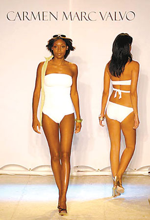 中新網(wǎng)4月13日電 據(jù)廣州日報報道,早在上個季末各大時裝周發(fā)布2006年春夏時裝上,Gucci、JeanPaulGaultier等國際大品牌和設計師便已經(jīng)將精心設計的泳裝新款呈現(xiàn)于觀眾面前。隨著夏天的臨近,從近期巴塞羅那、里約熱內(nèi)盧的泳裝秀上看到,今年春夏的泳裝新品更加年輕化,其中,年輕美眉熱愛的清純、度假、叢林以及鄉(xiāng)村這四大風格的泳裝備受關注。