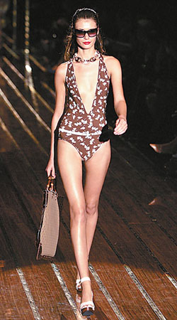 2006年春夏依然是一個花朵爛漫的季節(jié),不過去年流行的大花紋的暖色系泳裝卻被低調(diào)的細密碎花所替代,這源自于設計師們的鄉(xiāng)村生活體驗。