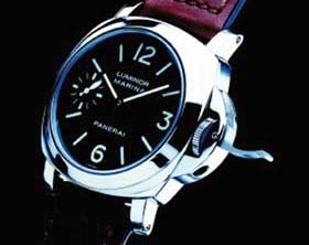 以意大利皇家海軍手表官方供應(yīng)商而聞名的Panerai其最大的特色是尺寸。最小的表款尺寸也有40mm。有許多高大的精英男性就是喜歡它的大尺寸,不過(guò)許多中等身材的男士們或者是女性同樣對(duì)它充滿著狂熱。Panerai的出現(xiàn)甚至顛覆了鐘表界的定律:不是自廠機(jī)芯,不是傳統(tǒng)的瑞士品牌。甚至它佩戴起來(lái)的沉重感在一般人看來(lái)可能不是那么舒服。但是這一切都抵擋不了表迷對(duì)它的熱愛(ài)。拋光精鋼表殼及藍(lán)寶石水晶表底蓋。黑色表盤附夜光小時(shí)標(biāo)示與阿拉伯?dāng)?shù)字,小秒針位于9時(shí)位置。藍(lán)寶石水晶玻璃,厚度3.5mm,抗反光處理,防水可達(dá)300米,刻有PANERAI標(biāo)志,皮革表帶及表扣。