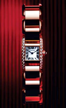 這款腕表出身顯赫的Tank世家,承襲了一脈相傳的貴族血統(tǒng),無(wú)疑是卡地亞家族的又一經(jīng)典巨作。它擁有長(zhǎng)方形的外框與優(yōu)美的弧線底座,造型小巧玲瓏,流露出明朗自主的女性美。Tankissime處處散發(fā)女性特有的魅力,實(shí)心的弧形鏈節(jié)以黃金、玫瑰金、白金或美鉆精制而成。 (來(lái)源:北京現(xiàn)代商報(bào);作者:楊帆)