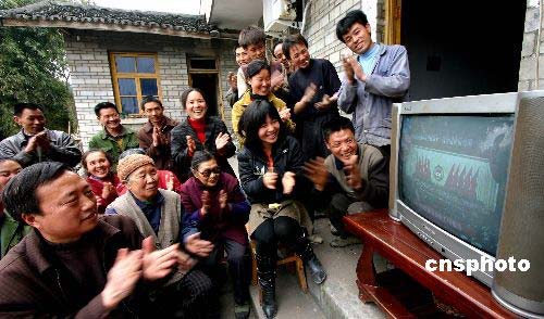 3月3日,重慶市永川區(qū)雙石鎮(zhèn)五龍橋村的村民在收看全國(guó)政協(xié)十一屆一次會(huì)議開(kāi)幕式盛況。中新社發(fā) 陳仕川 攝