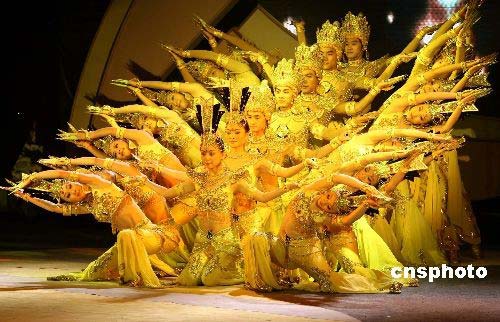 三月八日晚,北京,慶祝“三八”婦女節(jié)文藝晚會在全國政協(xié)委員駐地上演,邰麗華領銜的“千手觀音”表演把氣氛推向高潮。中新社發(fā) 盛佳鵬 攝