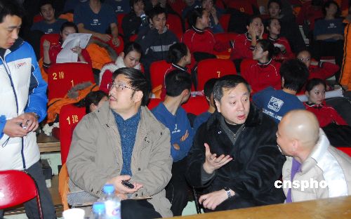 2008年中國農(nóng)歷春節(jié)將近,中央電視臺各類春節(jié)檔期的晚會節(jié)目進入了緊張的節(jié)目審查和彩排階段。文藝中心主任朱彤(前排右二)和春晚總導演陳臨春(前排左二)在彩排現(xiàn)場悉心指導工作。中新社發(fā) 楊影懿 攝