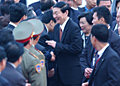 朱镕基與前來迎接的港府高官握手。
