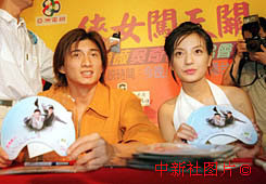 歌影視紅星趙薇、吳奇隆31日在香港出席電視劇“俠女闖天關(guān)”簽名會宣傳活動。中新社傳真 鄧慶樂攝