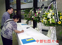 香港市民15日陸續(xù)到入境事務處大堂,吊唁日前在入境處大樓縱火案中殉職的高級入境事務主任梁錦光。中新社傳真洪少葵攝